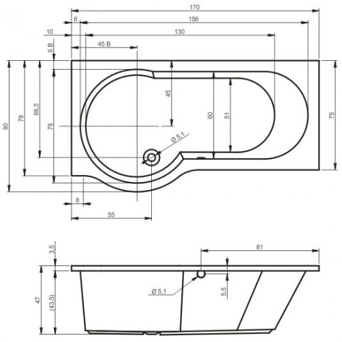 Dimensiune:170x75/90 / 2045 l