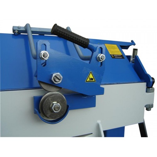 Prețul include: presa de îndoit + cuțitul circular (zincat) + masă de lucru cu demontare rapidă (zincată) + tampoane (zincate) + raportor bilateral cu blocada unghiului de îndoire.